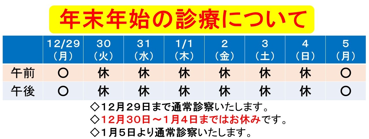 休診日:日曜日、祝祭日、12月30日~1月3日